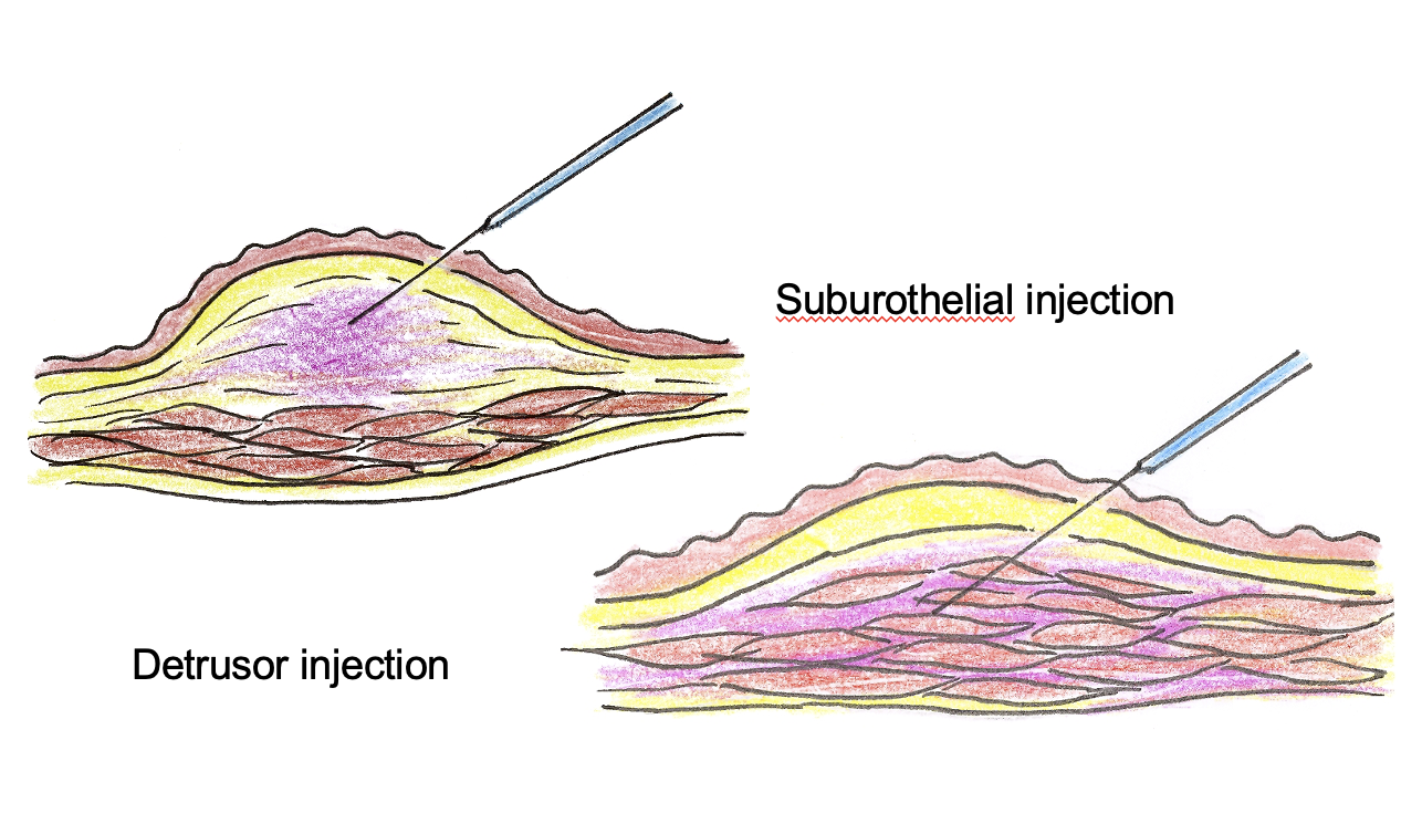 - Suburothelial injection for IDO and NDO (Kuo HC, 2005) - 200U in 40ml, injecting 40 sites